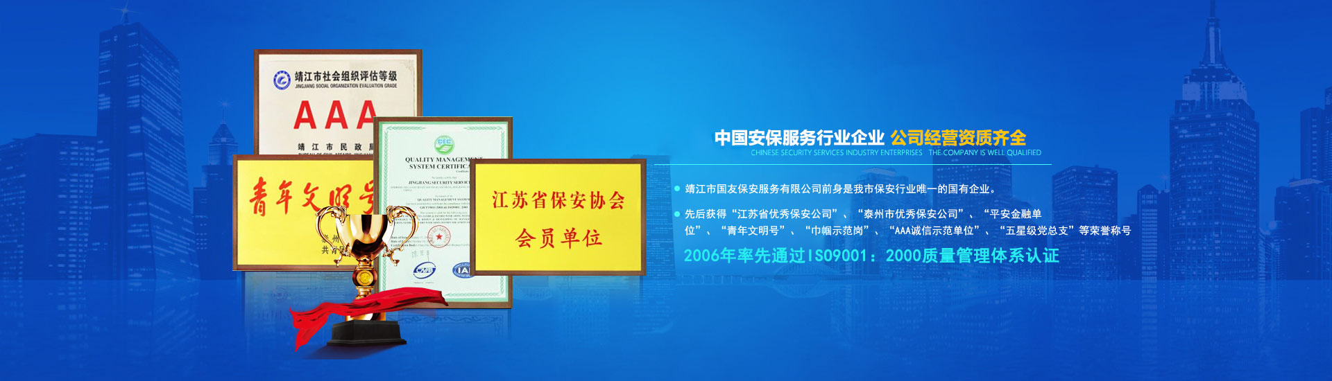 先后獲江蘇省優秀保安公司服務